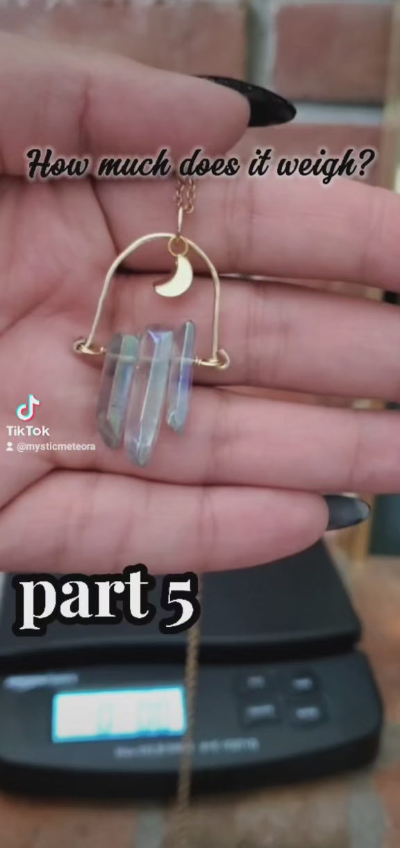 AB Luster Quartz Fan Necklace – Iridescent Power & Lunar Glam