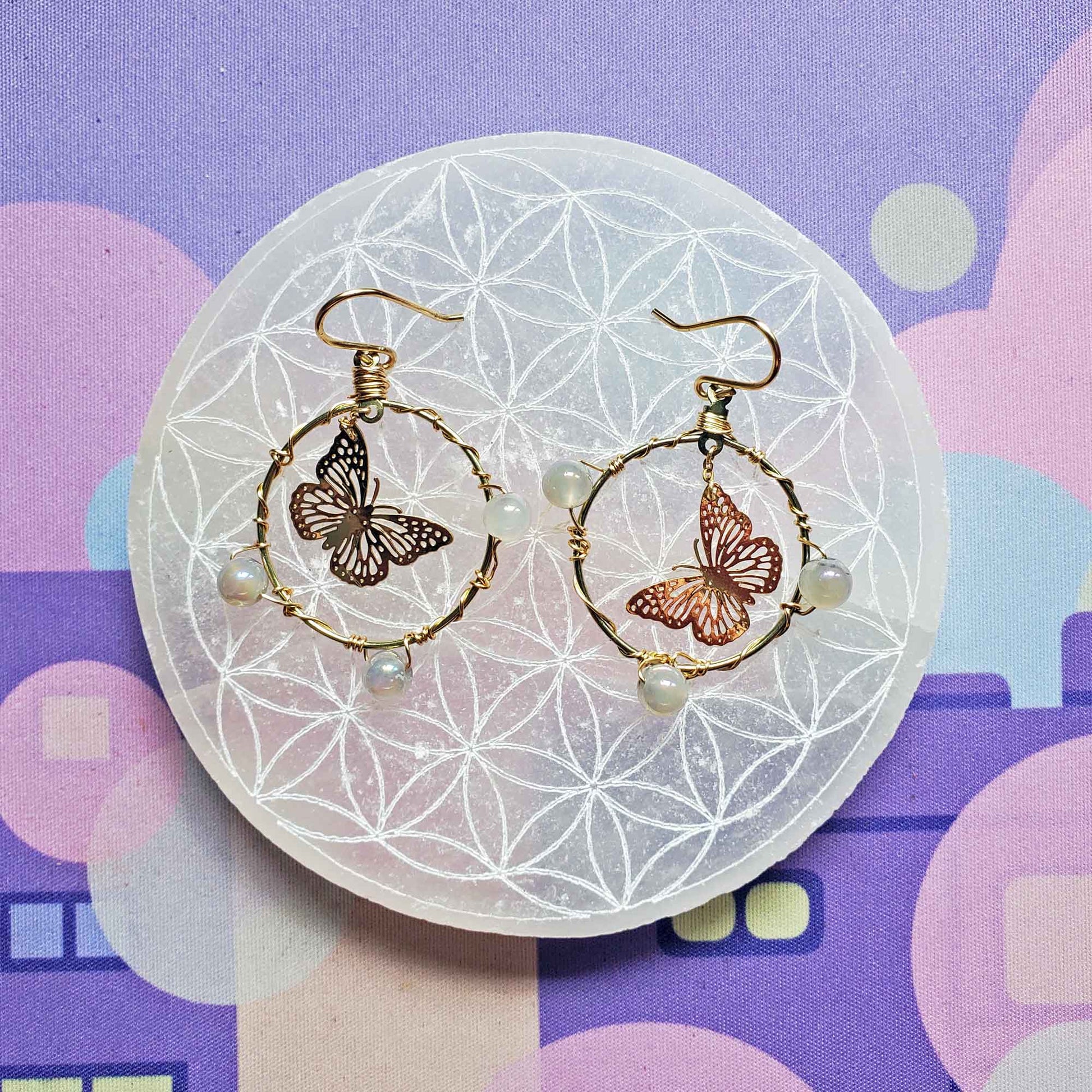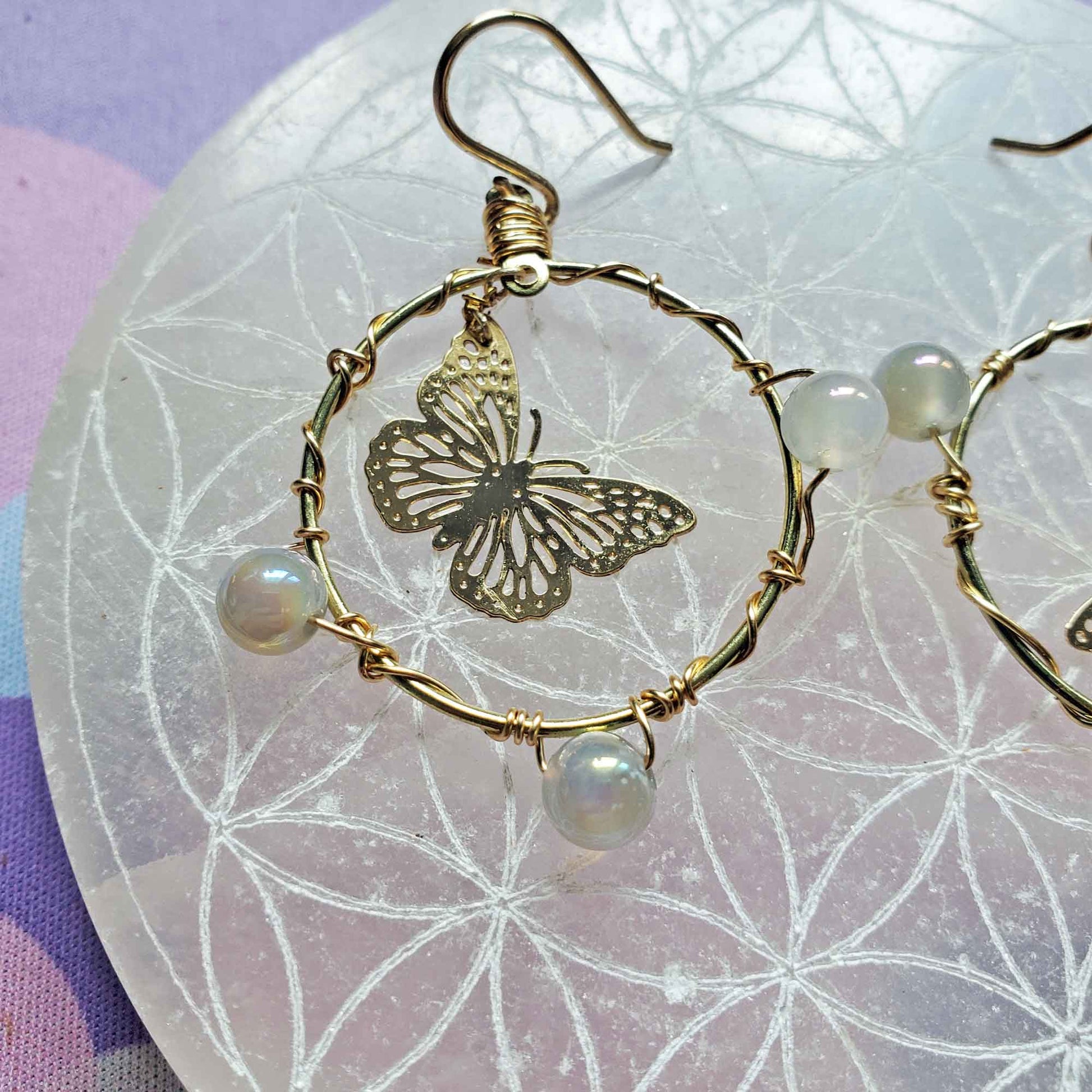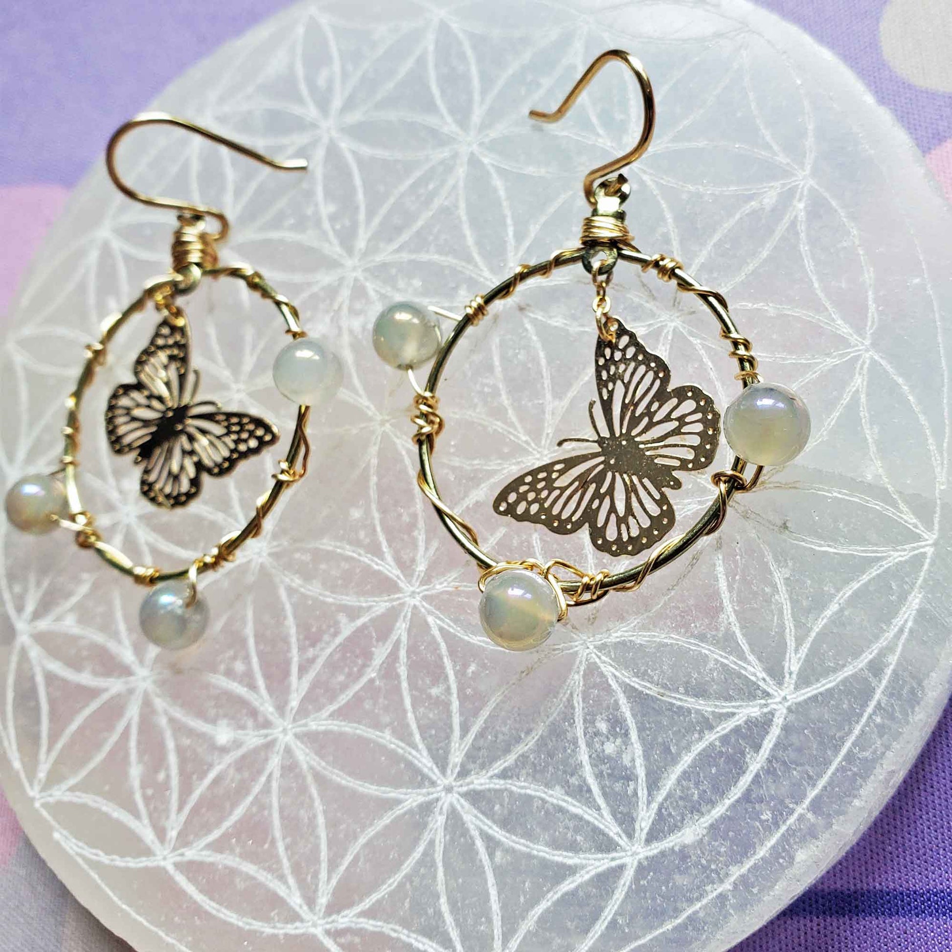 Agate Butterfly Circle Earrings – Grounding, Growth & Golden Energy