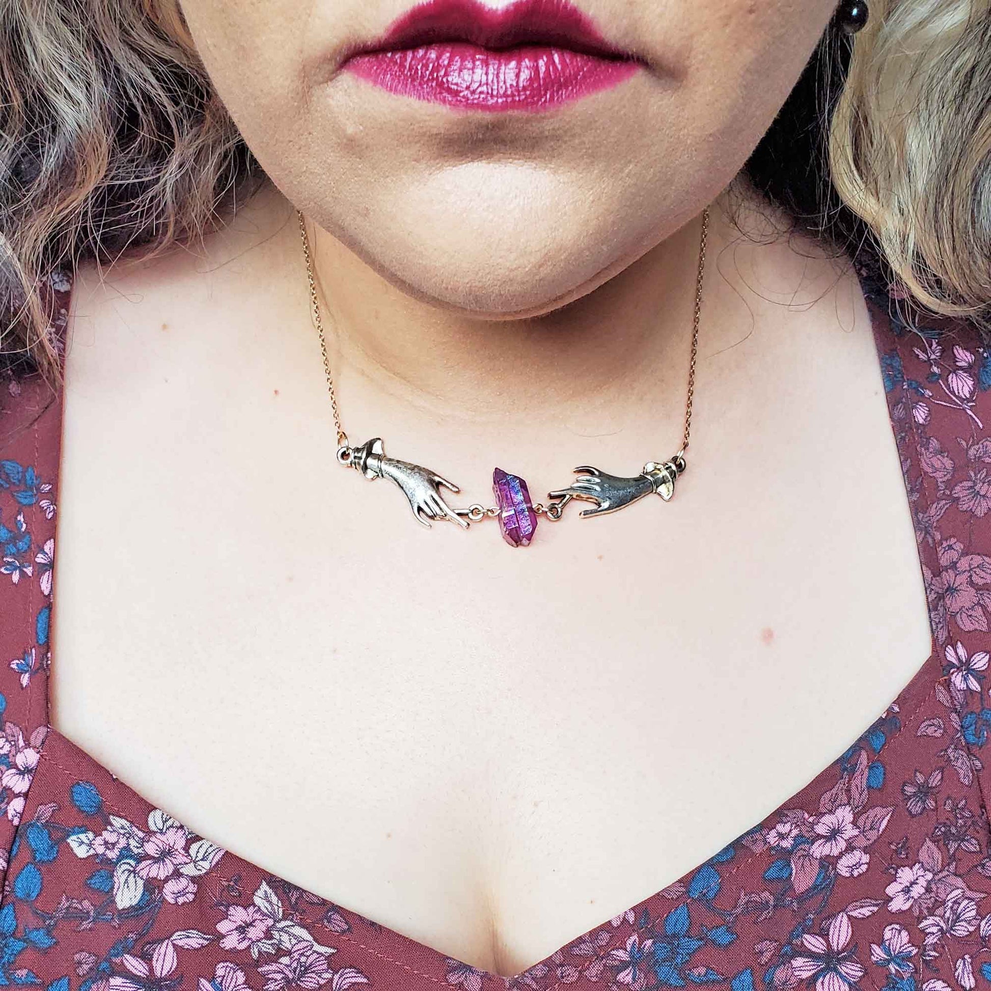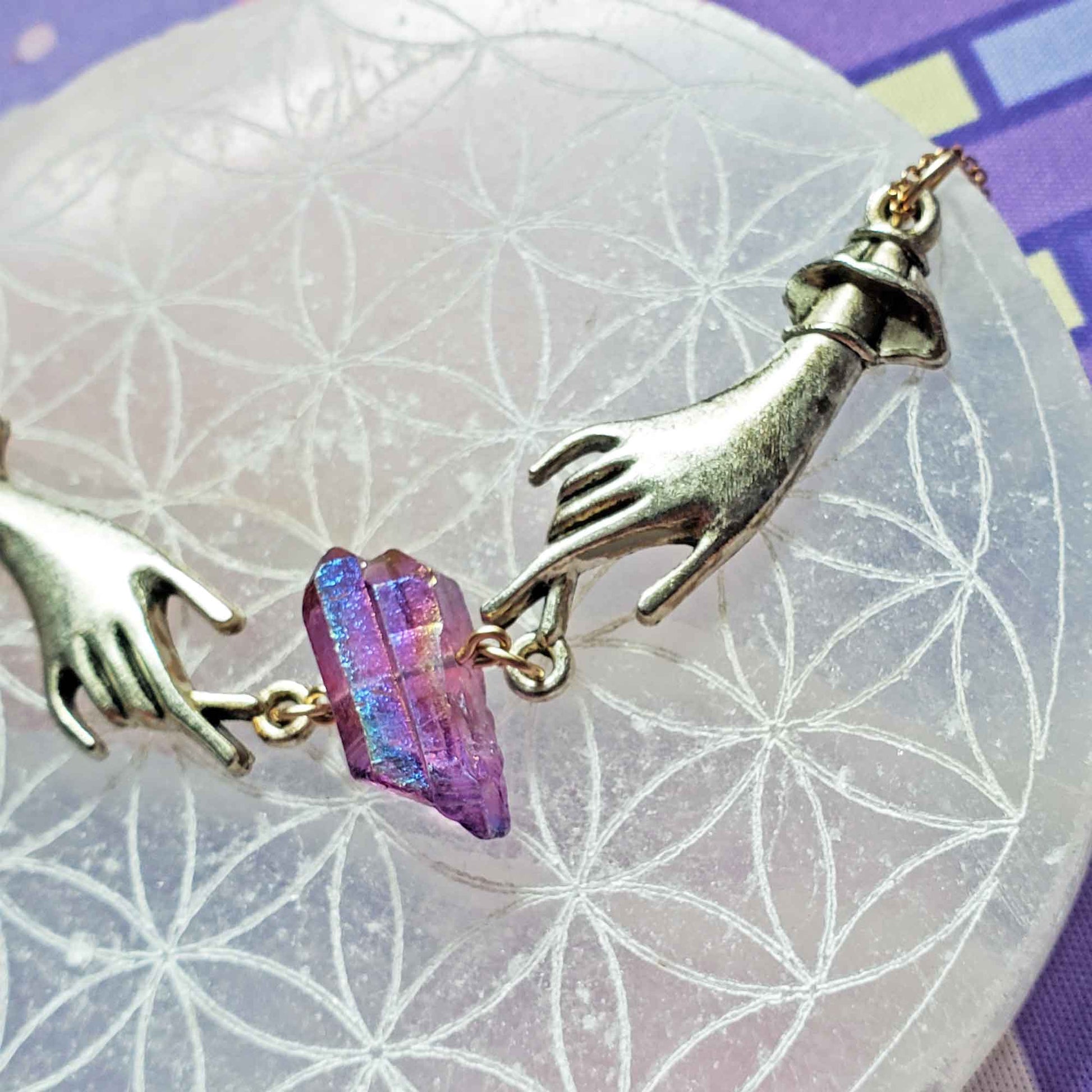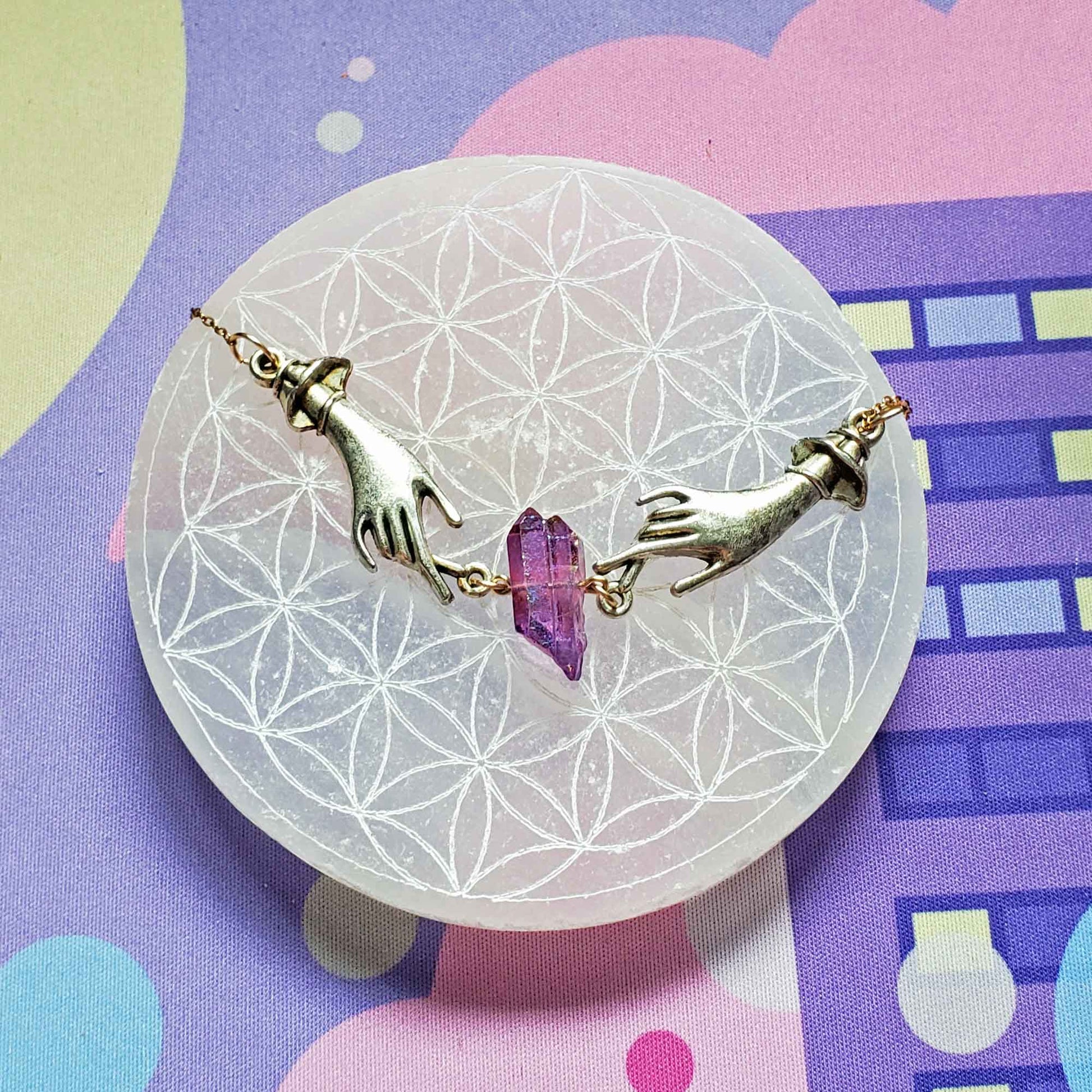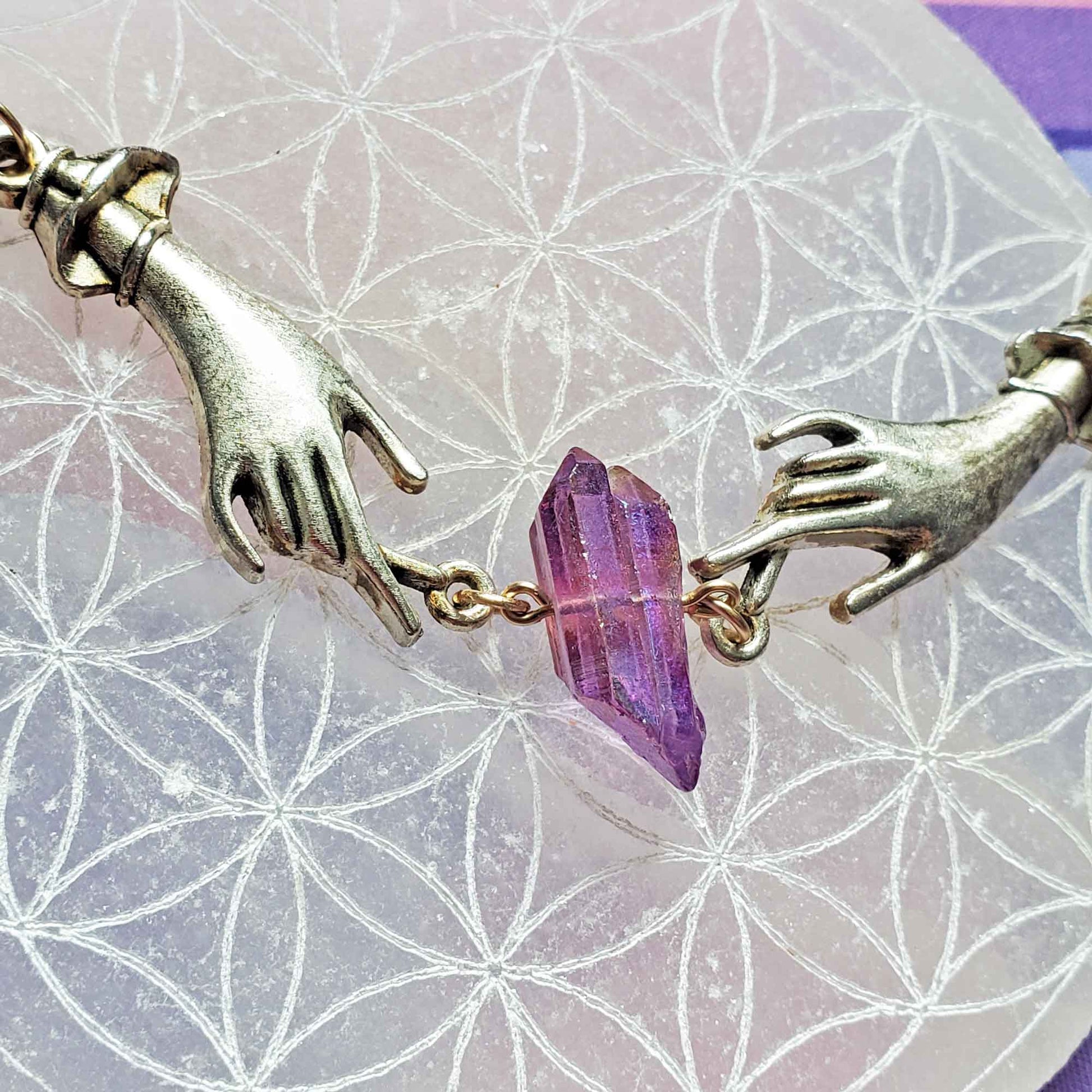 Angel Aura Amethyst Palm Necklace – Divine Guidance & Radiant Protection
