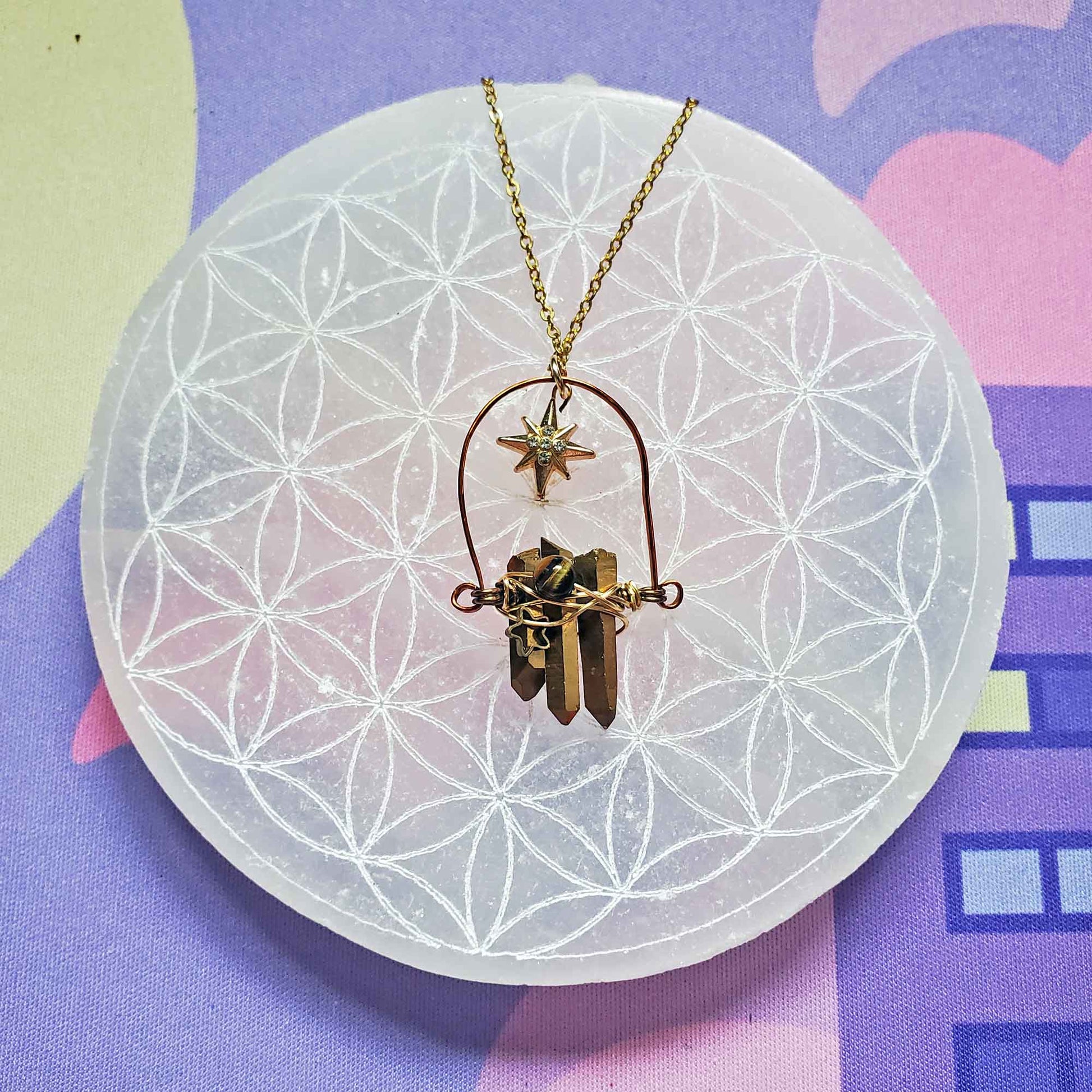 Wrapped in gold wire and crowned with a silver star charm, this necklace channels divine masculine and feminine in perfect harmony. A talisman for those who lead from intuition but act with fire.