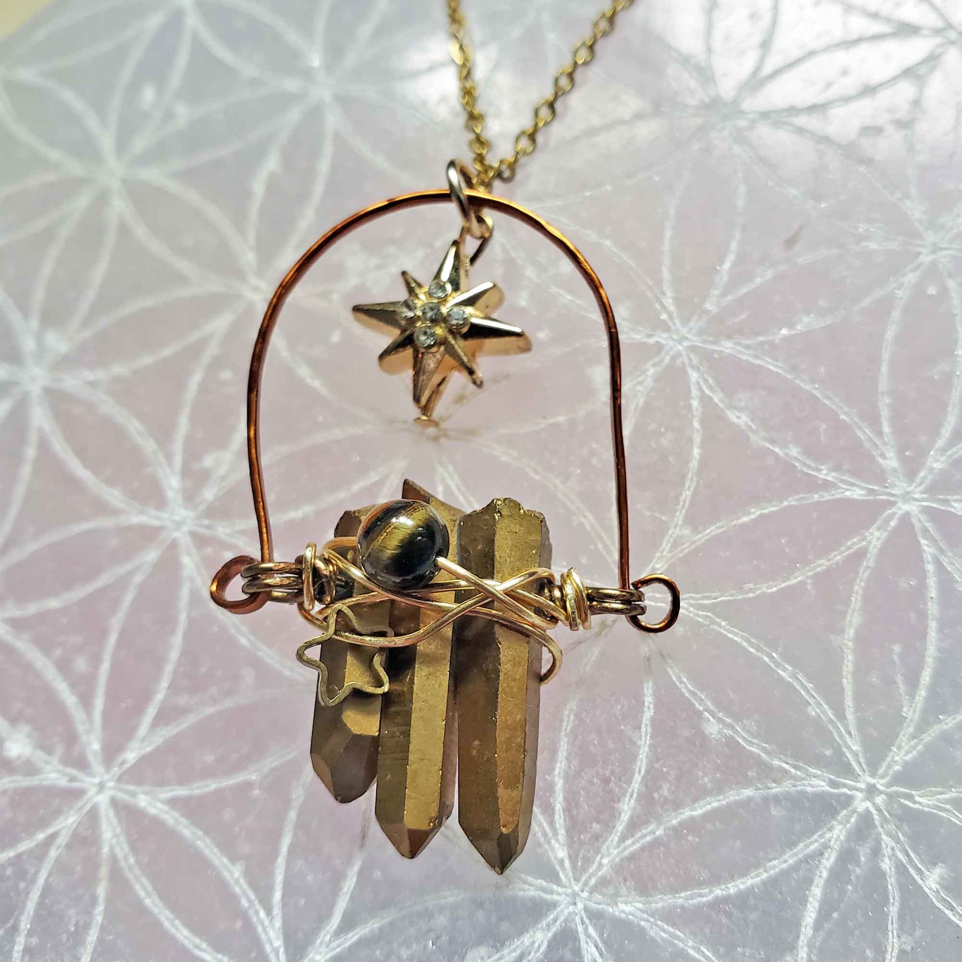 Bronze Titanium Quartz & Tiger Eye Necklace – Solar Power & Grounded Radiance